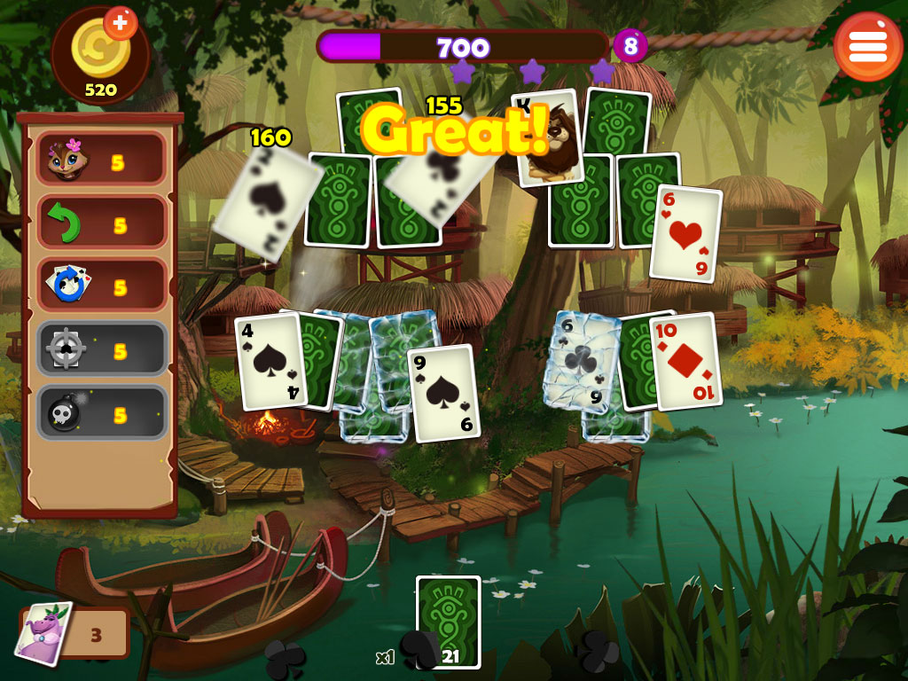 Enjoy the addictive beautiful matching solitaire in the tropical forest and show your card skills!